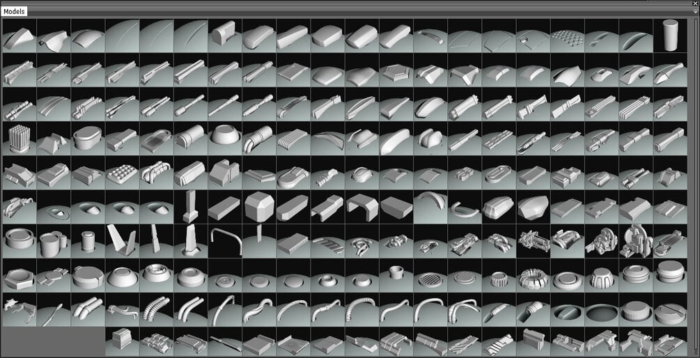 Original 3DCoat Tinker Objects (197) and Splines (161) as extensions. All models don't have UVs.